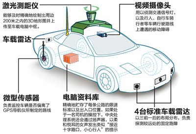 无人驾驶汽车的“即感知系统”主要由相机、微波雷达和激光雷达等传感器组成。