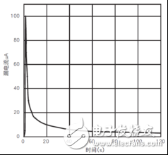 铝电解电容在承受直流电压时,会有一个小直流电流过电容,理想电容器是不能通直流的,称之为漏电流LC。LC会随时间变化,如图10、图11,最后达到一个稳定值。但温度升高时,LC增加;施加电压降低,LC也会减少。