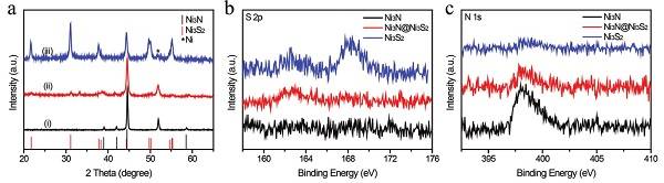 (a)Ni3N,Ni3N@Ni3S2,Ni3S2的XRD衍射谱图;