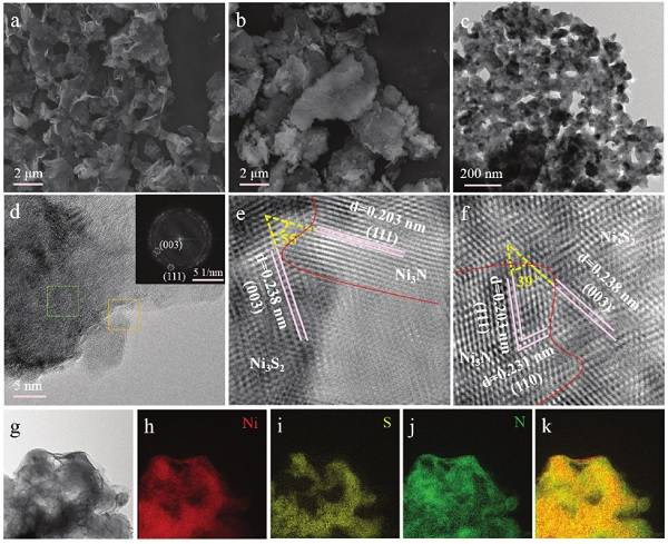 (g-j)Ni3N@Ni3S2中的EDS元素分布图;